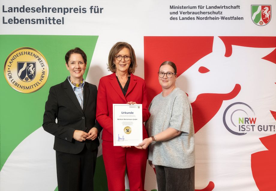 Wir freuen uns sehr über die Auszeichnung mit dem Landesehrenpreis für Lebensmittel NRW. Dieser besondere Preis würdigt unser kontinuierliches Engagement für eine verantwortungsvolle und qualitativ hochwertige Lebensmittelproduktion hier in Nordrhein-Westfalen. Hervorgehoben wurden dabei insbesondere unser Einsatz in der Ausbildung, eine tarifgerechte Bezahlung unserer Mitarbeiterinnen und Mitarbeiter sowie die hohe sensorische Qualität unserer Produkte. Die Auszeichnung ist für uns Anerkennung und Ansporn zugleich, unseren Weg mit Verantwortung, Qualität und klarer Verbundenheit zum Standort NRW weiterzugehen.